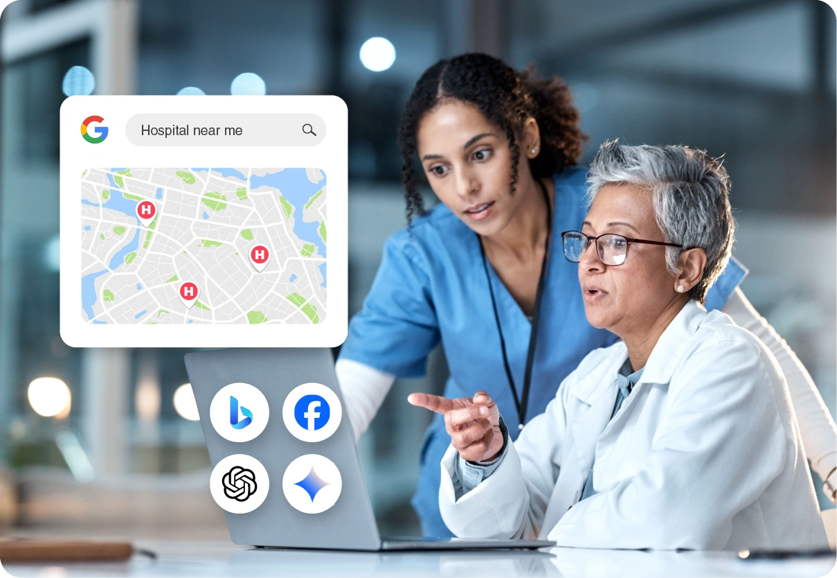 Get discovered by patients on Google Maps and 30+ discovery platforms, including AI search engines like GPT and Gemini.