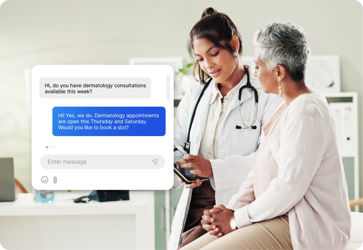 Your front desk can focus on what matters most while our chatbot answers patient queries in their regional language, personalized for each locality.